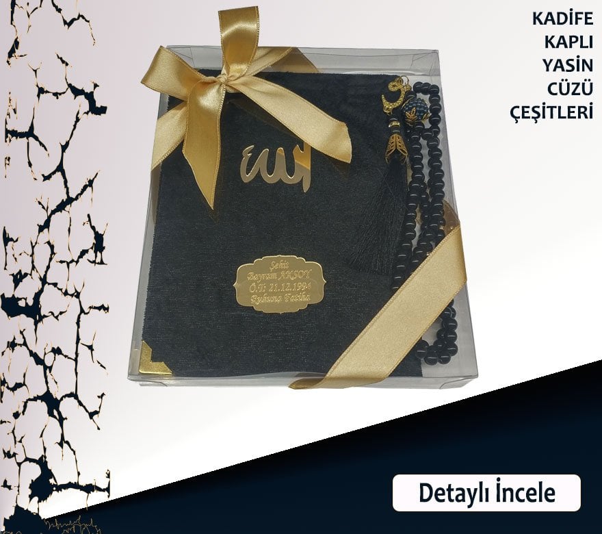Hediyelik Yasin Cüzü Seti Kabe Desen Çanta Boy Tül Kese li